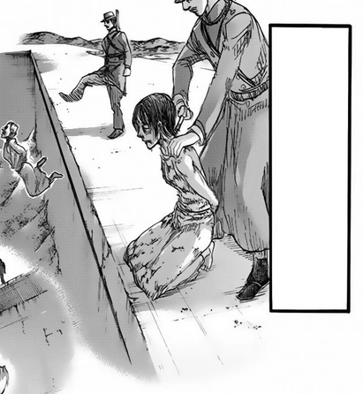 Hange le pregunta a Historia si Ymir pudiera haber dejado algún mensaje secreto en la carta, algo que sólo ellas dos entendieran. Historia lo niega, señalando que Ymir probablemente no haría algo como eso. Historia llora silenciosamente hasta que los otros miembros del Cuerpo de Exploración llegan. Eren, Mikasa y Armin saludan formalmente, pero Historia insiste en que las formalidades son innecesarias entre ellos. Después de una pequeña y amistosa charla, Hange les informa que deben ir a la reunión militar. En alguna otra parte de Trost, Sasha se recupera de sus heridas.