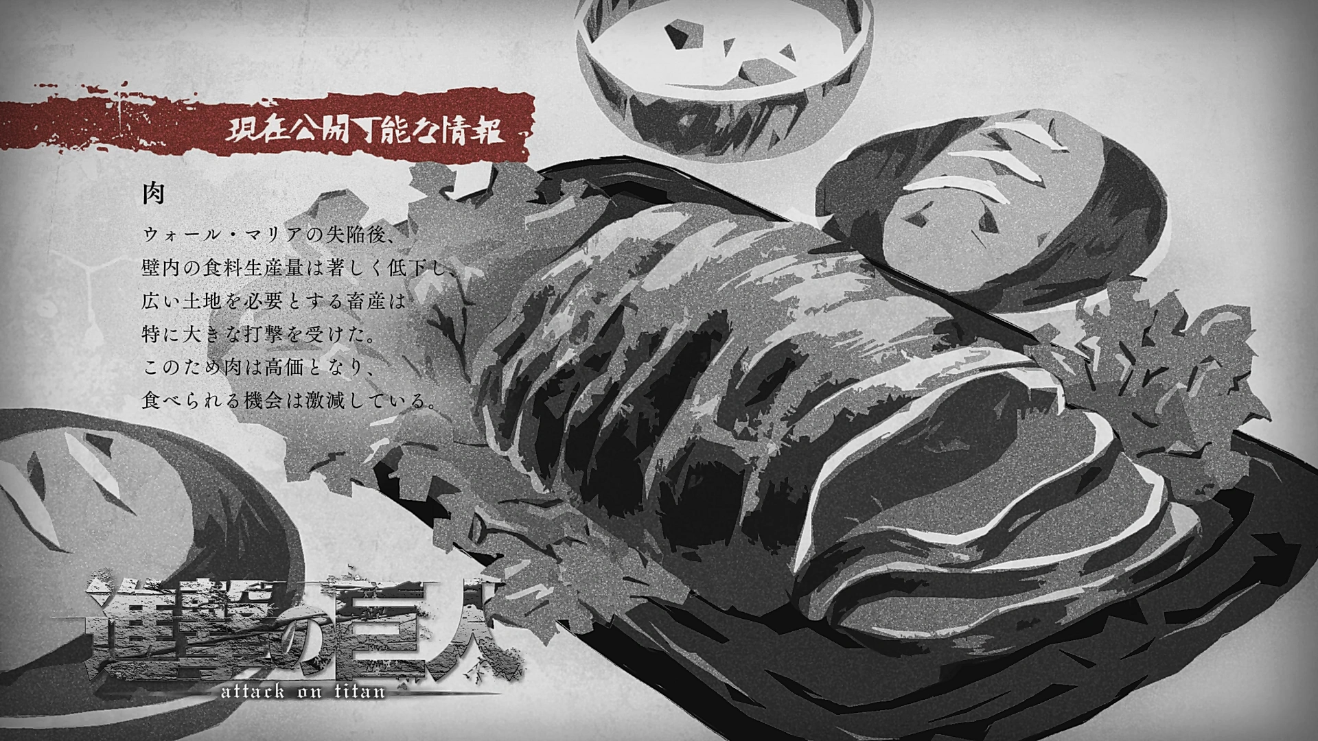 Los oficiales desde el otro lado del comedor creen que fue una mala idea darles carne a los soldados ante el bochornoso espectáculo que se estaba desarrollando y Harold está de acuerdo con ellos mientras menciona que no debió gastar dos meses del presupuesto en la cena, Eren y Connie finalmente logran poner a Sasha bajo control al atarla a un poste y tras notar su reciente comportamiento, Connie recuerda como hace cuatro meses se dispuso a compartir un trozo de carne con sus compañeros durante la limpieza de los cañones. Eren recuerda que eso fue minutos antes de la aparición del Titán Colosal, sorprendiéndose de lo rápido que ha pasado el tiempo desde ese día.