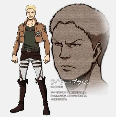 Reiner Braun (ライナー・ブラウン Rainā Buraun?) fue el vice-comandante (副長 Fukuchō?) de la unidad de los Guerreros y el protagonista principal de la serie desde la perspectiva marleyana, nació y creció en la zona de internamiento de Liberio como hijo ilegitimo de una mujer eldiana y un padre marleyano. Eventualmente, entró a la unidad de cadetes Eldianos y a la edad de 10 años fue seleccionado para heredar el poder del Titán Acorazado.
