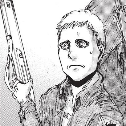 Waltz es temeroso y por supuesto, alguien fácil de asustar con solo palabras puesto que no había conocido a Eren (Jean disfrazado) y no dudó en amenazarlo con su rifle cuando bajó del coche.
